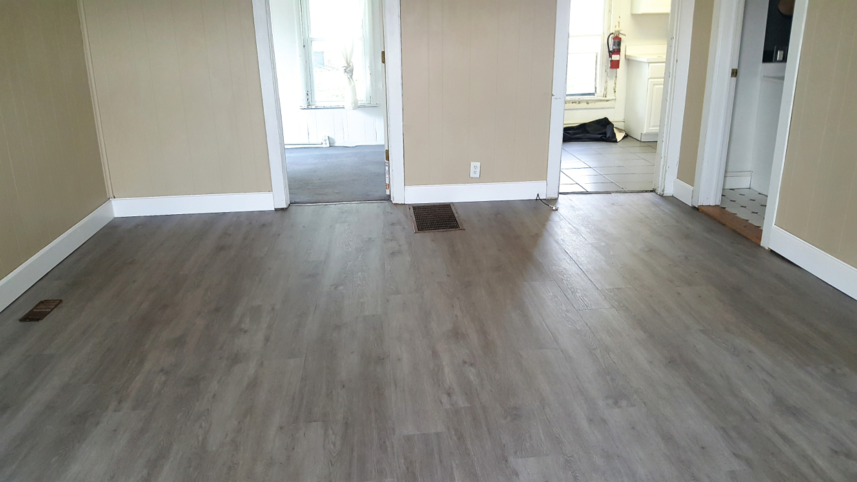 Features of this 4-bed, 1-bath house include central air and a gas furnace; a newly remodeled bathroom with a cast iron porcelain Kohler tub, tiled tub surround, and tiled floor; a newly remodeled kitchen with a dishwasher, washer and dryer, and lots of cabinet space; and brand new luxury vinyl plank flooring in the living room which looks like hardwood but holds up better and is a breeze to clean.