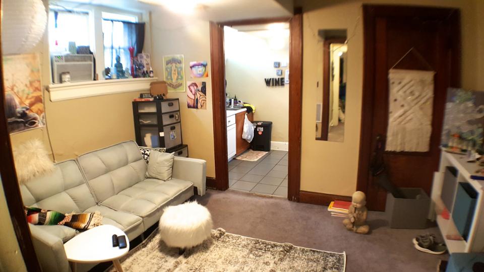 And this student rental isn’t short on storage; the bedroom has a large closet, and there are two more closets in the apartment. Our rental company pays the city utilities as well as gas to heat the hot water. Tenant pays electric, gas for the furnace and Wi-Fi. $567 security deposit.