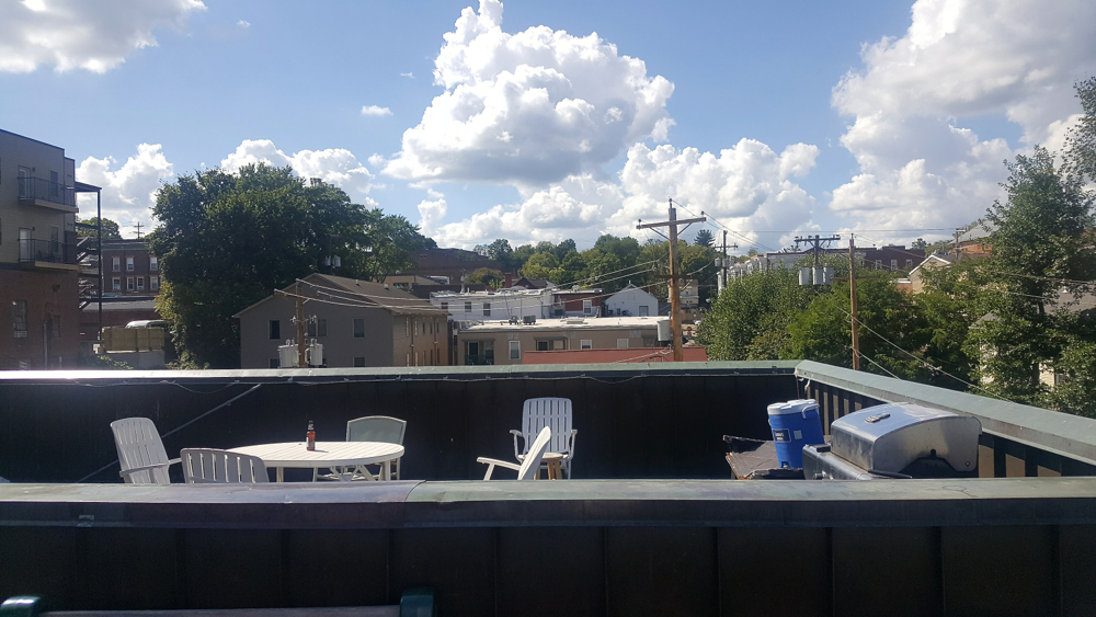 Looking for an off-campus rental unit that has outdoor space, a view, hardwood floors, updated kitchen and bathrooms? You’ve found it! 4 or 5 people can rent this modern, spacious Athens apartment located just off Court Street.