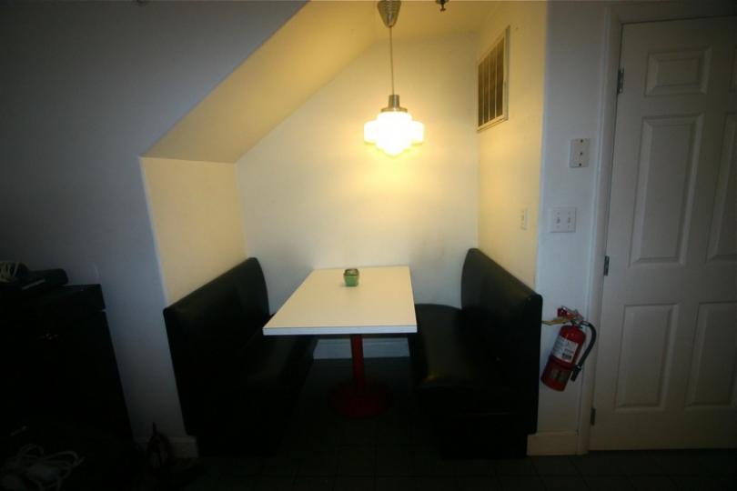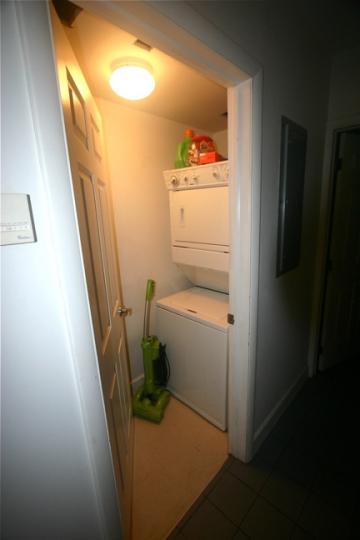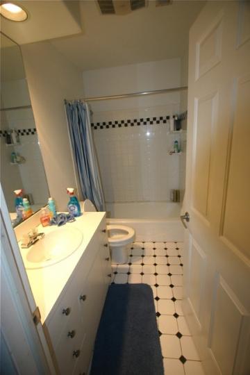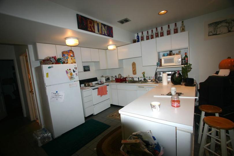 The kitchen in this luxury OU housing has a dishwasher, lots of cabinet space, and a restaurant booth with a cool Art Deco light fixture. There is a washer and dryer right in the apartment (and it’s not coin operated!). This close-to-campus rental unit also features central air conditioning provided by a high efficiency heat pump, which means low utilities for you and all your roommates.