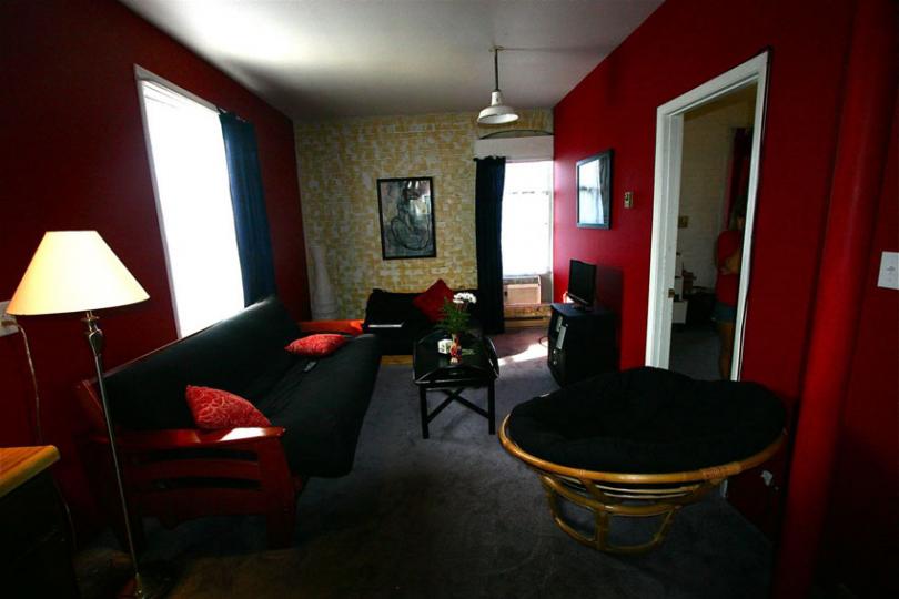 We just redecorated this cool 2-bedroom apartment at our 74 E State rental building, painting the walls a dramatic red and the trim a crisp white. The carpet is new in the living room and adds to the overall cozy ambiance of this open floorplan. We also remodeled the bathroom. A super-efficient mini-split system provides heat and AC.